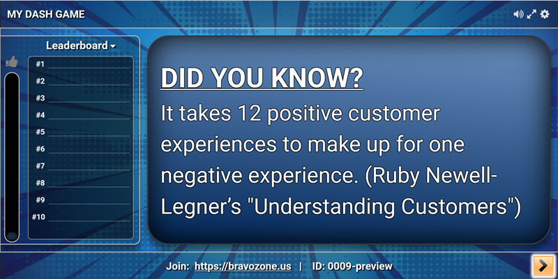 There are many ways to create an engaging learning experience with your BRAVOZONE games and quizzes. We will explore how to utilize different question types and other techniques to create a surprising insight, or statistic that immediately grabs your audience's attention. Pair this with a compelling visual or a short video can help you drive those AHA! Moments home.