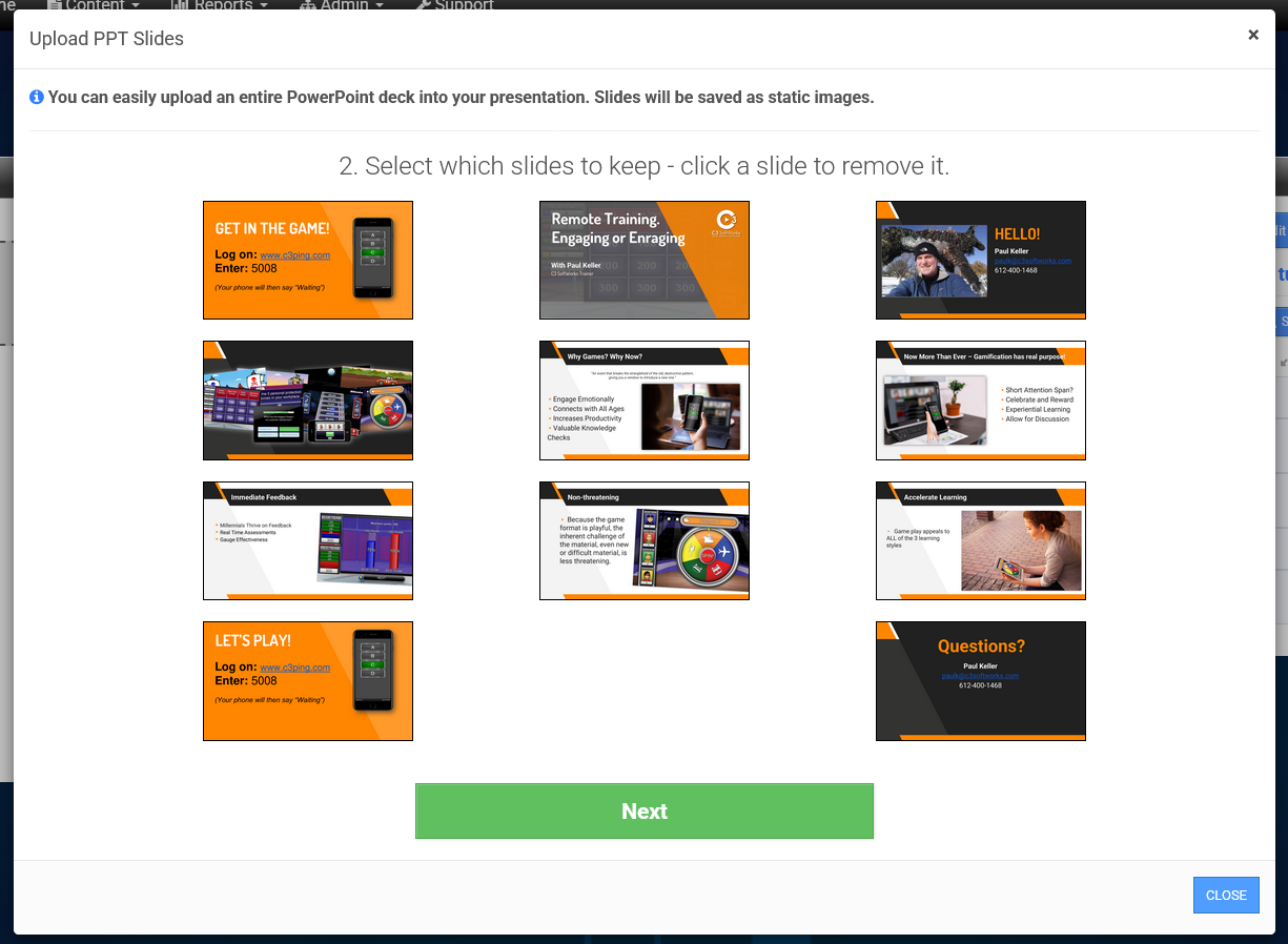 Finally, pick only the slides you need, or bring in the whole show with one click.