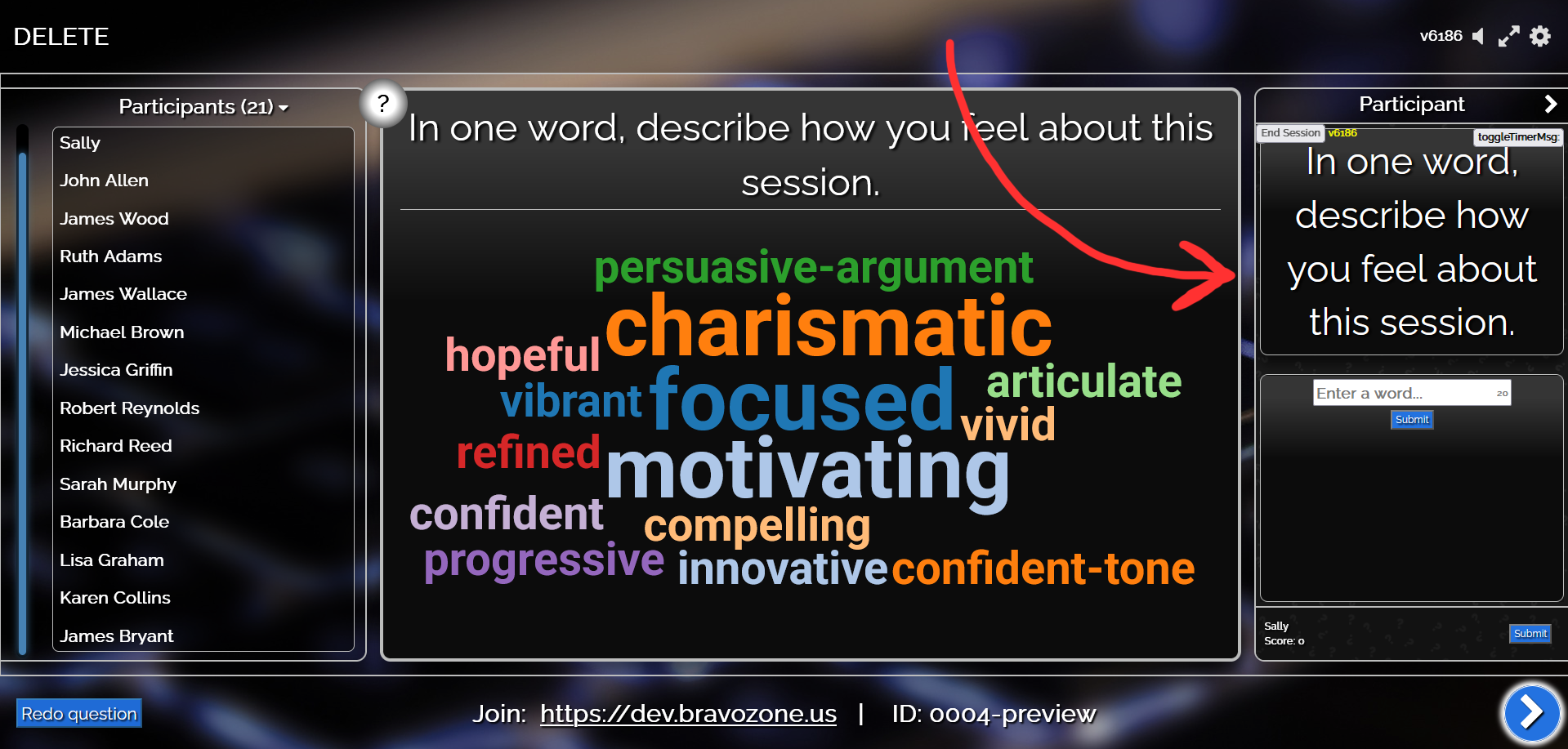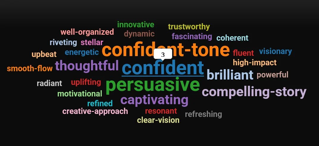 In this example, the word “confident” appears bigger and bolder, so the more often it’s entered by your attendees, the more important it is.